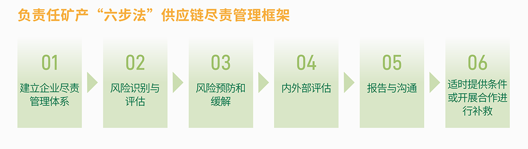 公司遵循《經(jīng)濟合作與發(fā)展組織受沖突影響和高風險區(qū)域礦石負責任的供應鏈盡職調查指南(第三版)》《中國對外礦業(yè)投資行業(yè)社會責任指引》《中國礦產(chǎn)供應鏈盡責管理指南(第二版))等文件,于內部制定了《負責任礦產(chǎn)資源供應鏈管理政策》等文件,并基于政策要求供應商簽署《供應商行為準則》《不使用沖突礦產(chǎn)承諾書》邀請供應商填寫礦物報告、KYS 等調查表,引導和規(guī)范上游鋰礦供應商行為,完善鋰供應鏈盡責管理,鼓勵其承擔更多的環(huán)境和社會責任。
